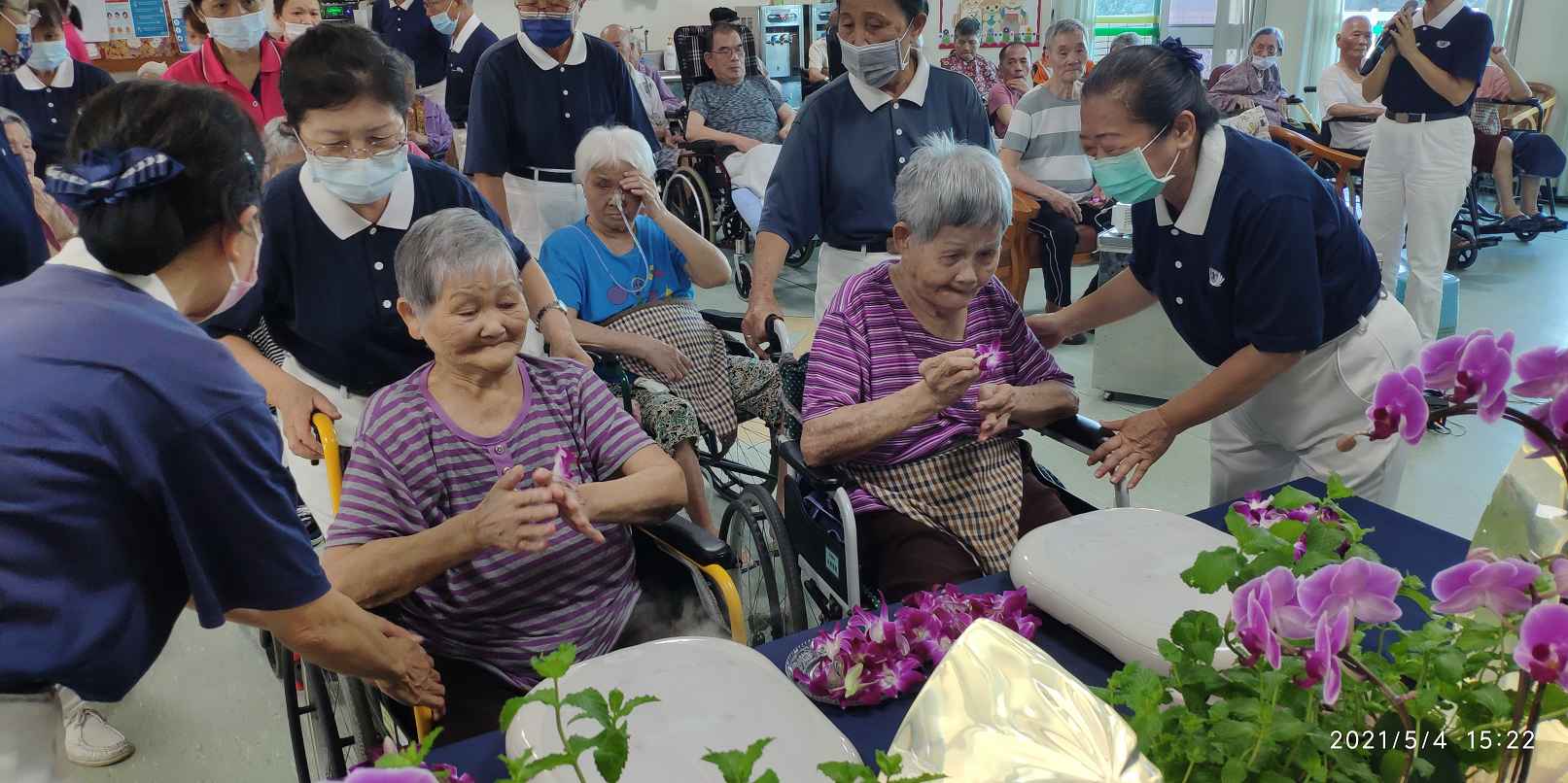 母親節是一個為感謝母親的節日,本月份慶生會結合母親節活動辦理,一輩子,妳圍著我轉;這一次,換我圍著妳轉,而麻豆慈濟的愛心志工們長期以來均在本中心關懷長者並提供志工服務,本次更主動表示協助辦理母親節活動並辦理浴佛祈福活動,讓長者在中心的生活更加多采多姿,也藉此增加與外界接觸之機會。